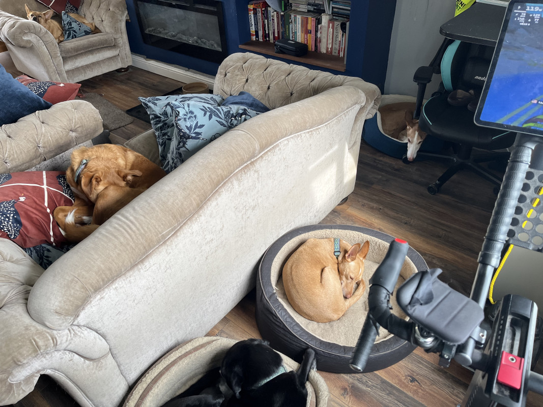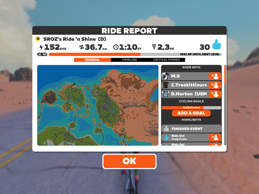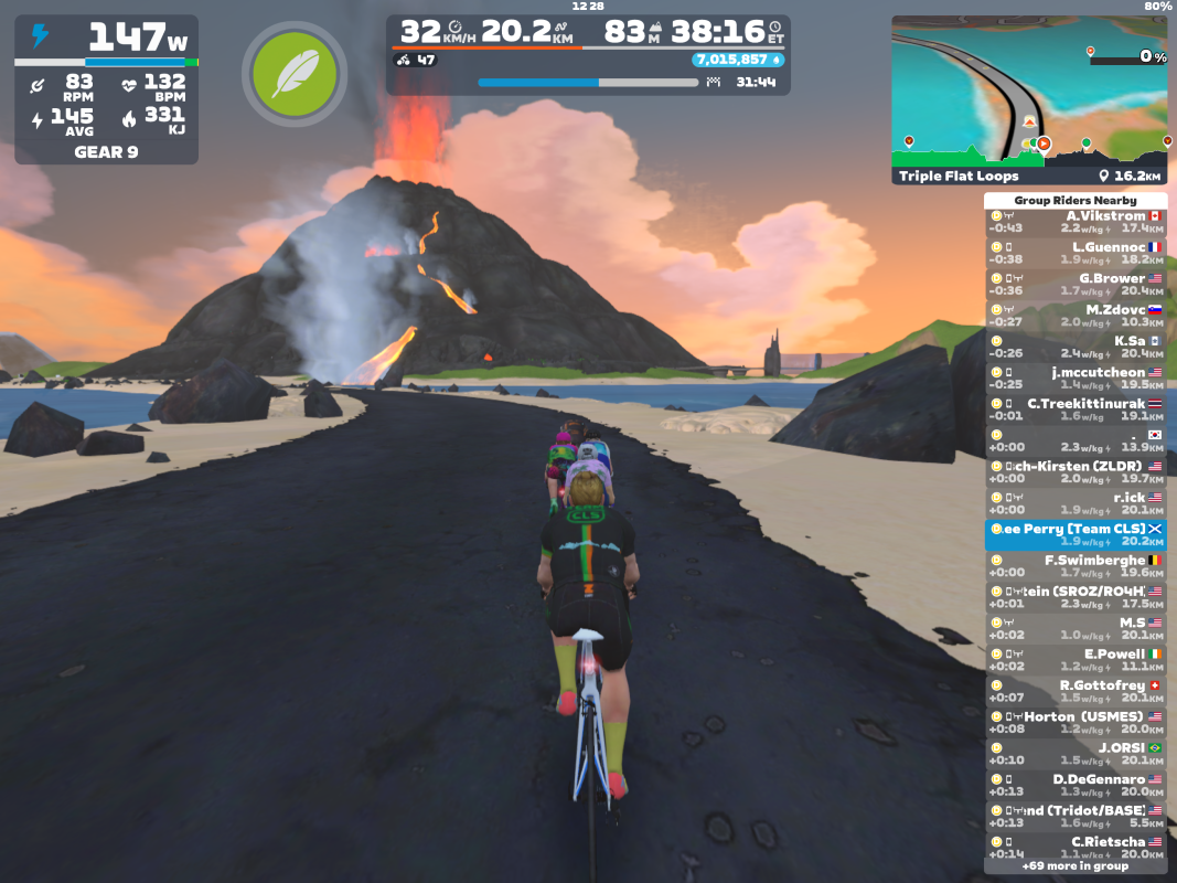 Group Ride (D) with SROZ on Triple Flat Loops over Watopia, recovery ride later. Decent progressive effort.