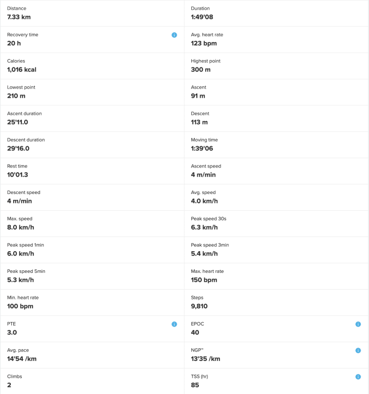 πΆββοΈββ‘οΈ β°01:49:10 π7.33km π«91m β€οΈβπ₯123bpm π§600Kcal
