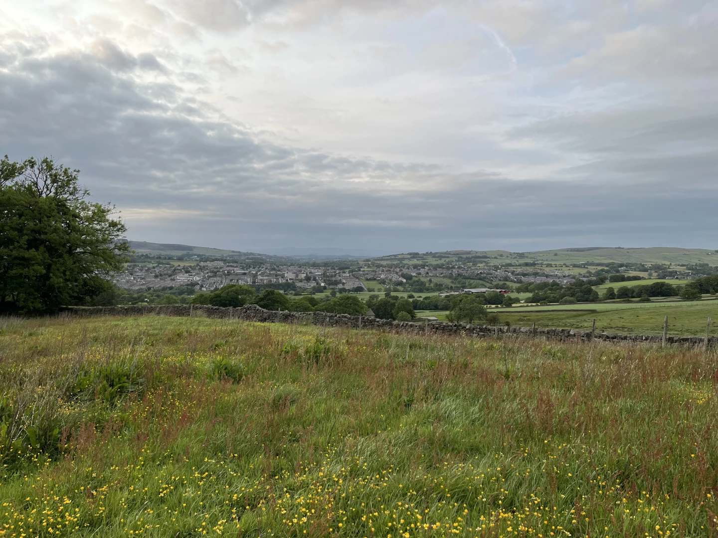 Evening walk with BMFWC from the Shooters Arms, out through Marsden Park Golf Course, and back through the fields taking in the views to Colne and Trawden.