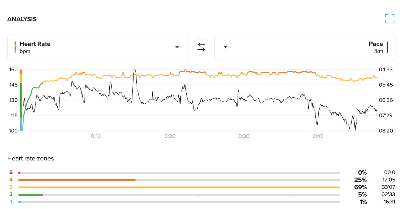 Evening endurance run, trying to run to HR zones which I always struggle to do as feels slow - could not drop HR in the warm down however slow I ran.