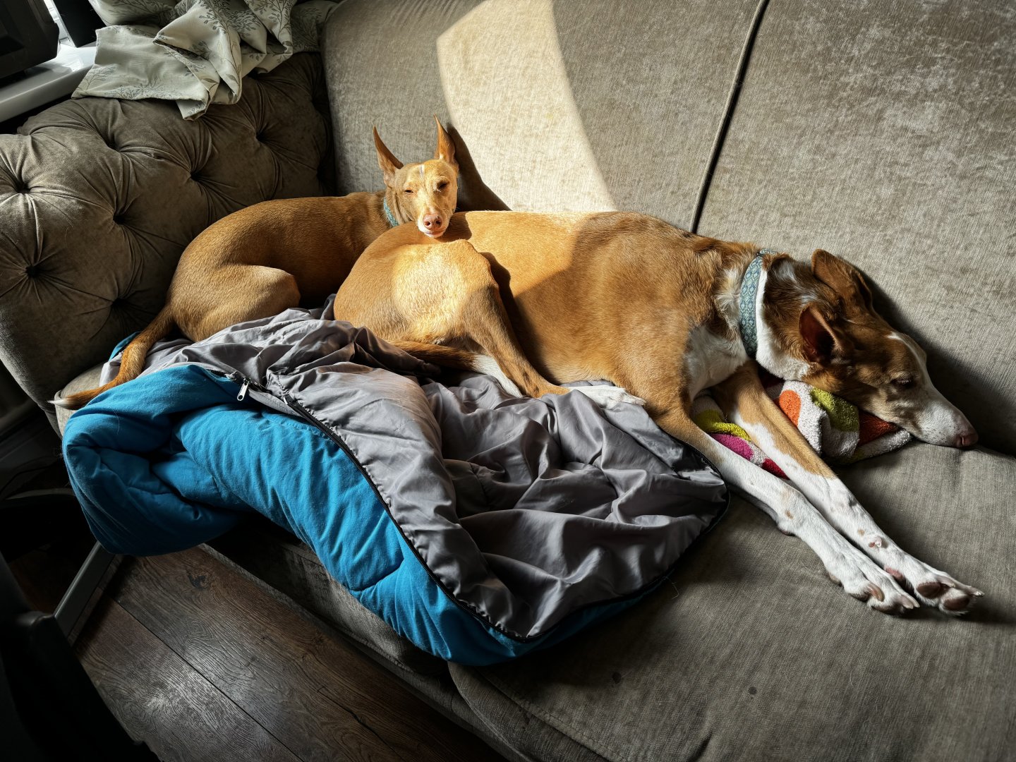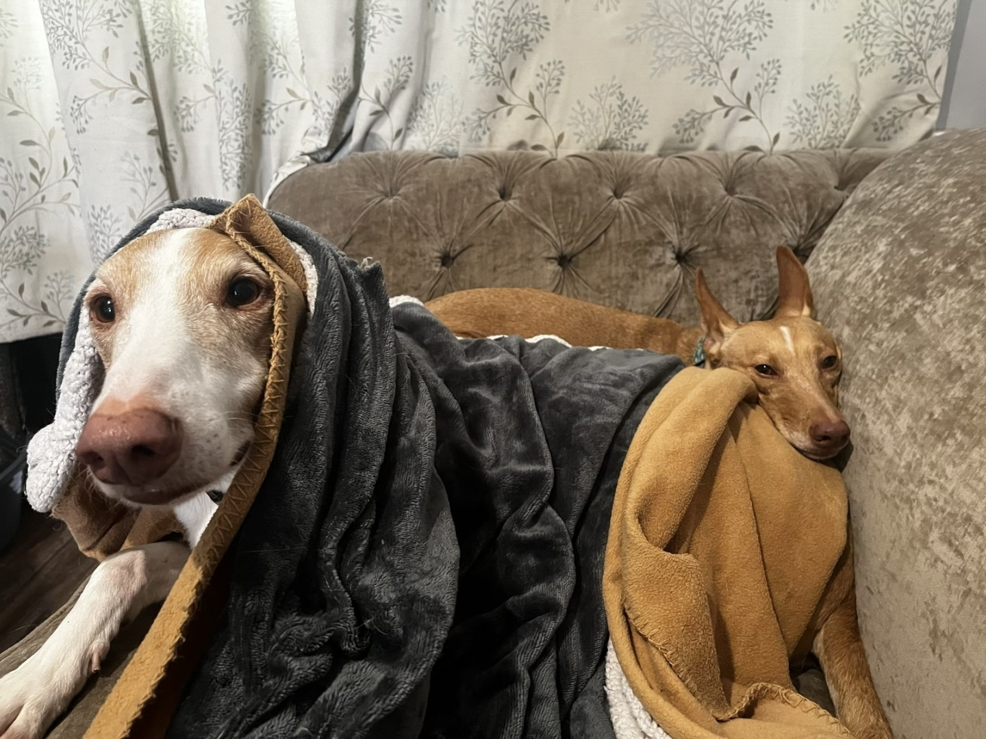 Podenco Andaluz sitting on Podenco Ibicenco - this cute photo of Mr Leo and bayLee appeared on my phone while I was away at my office in Stoke today. I've never seen these two like this before. 🔖#podencos #dailyDog