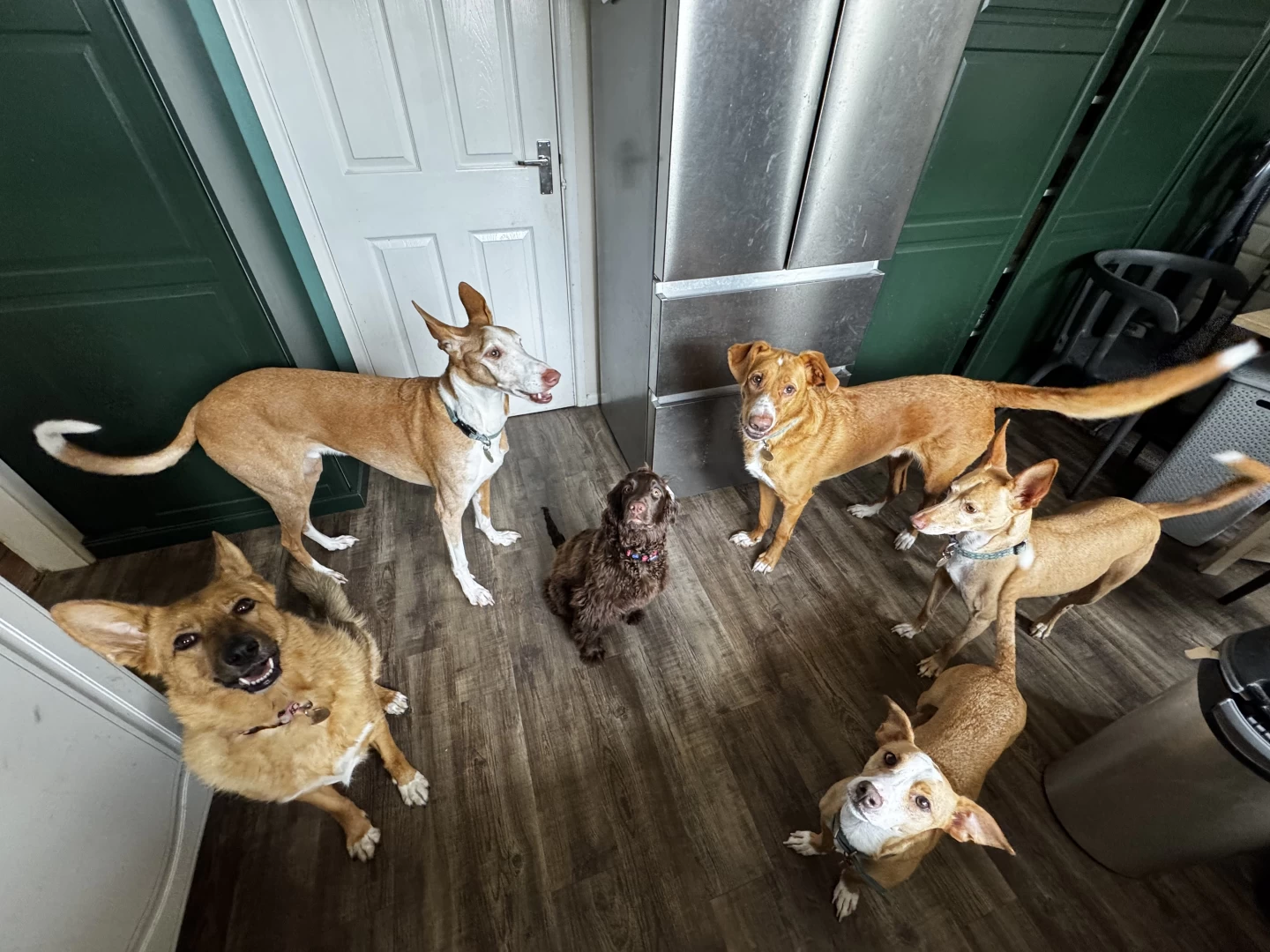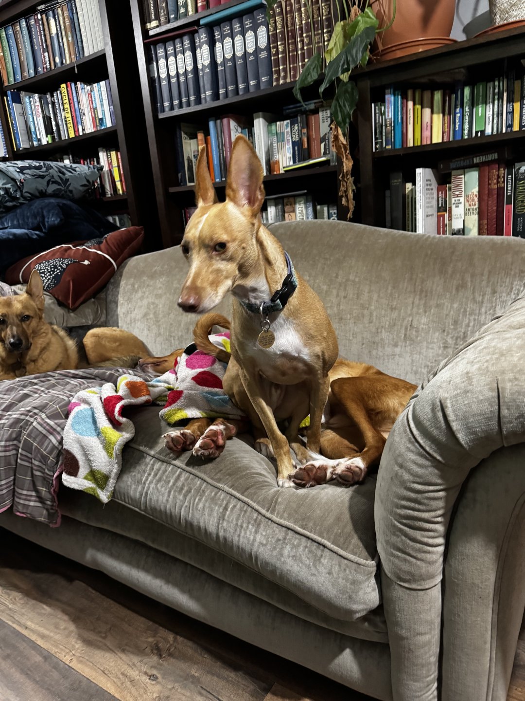 With all of the Podenco blanket dwelling and hide and seek, it's really not unusual to lose a dog or two in our house. Here is a prime example of what can only be described as 'shithousery' from Stevie last night. 🔖#podencos #dogsOfMastodon