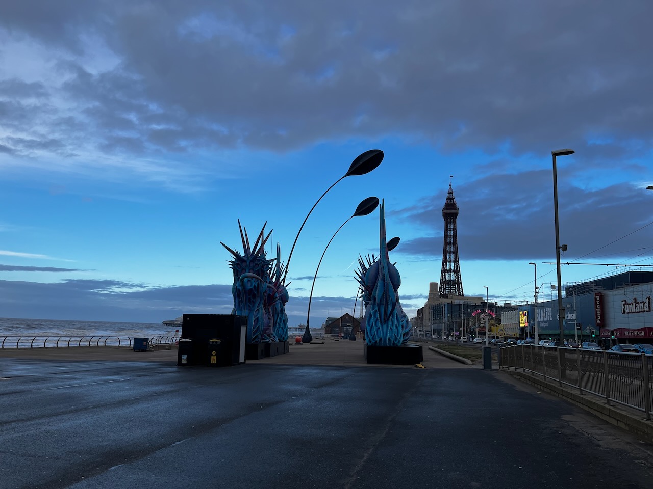 Starting at central pier we walked South to the dunes at Lytham, before making our way back for fish and chips at Papa's near the Tower (the best chip shop in Blackpool).
