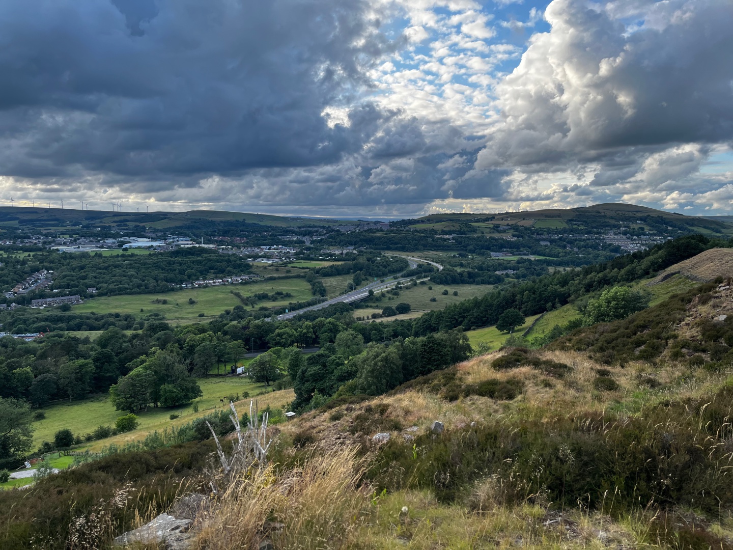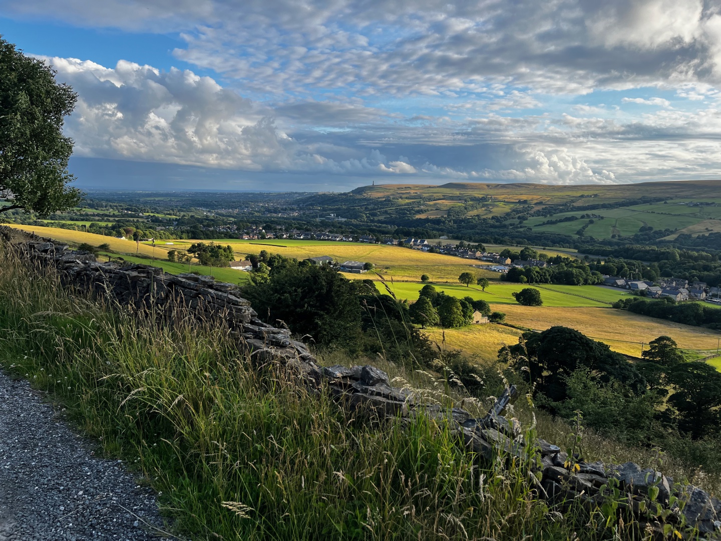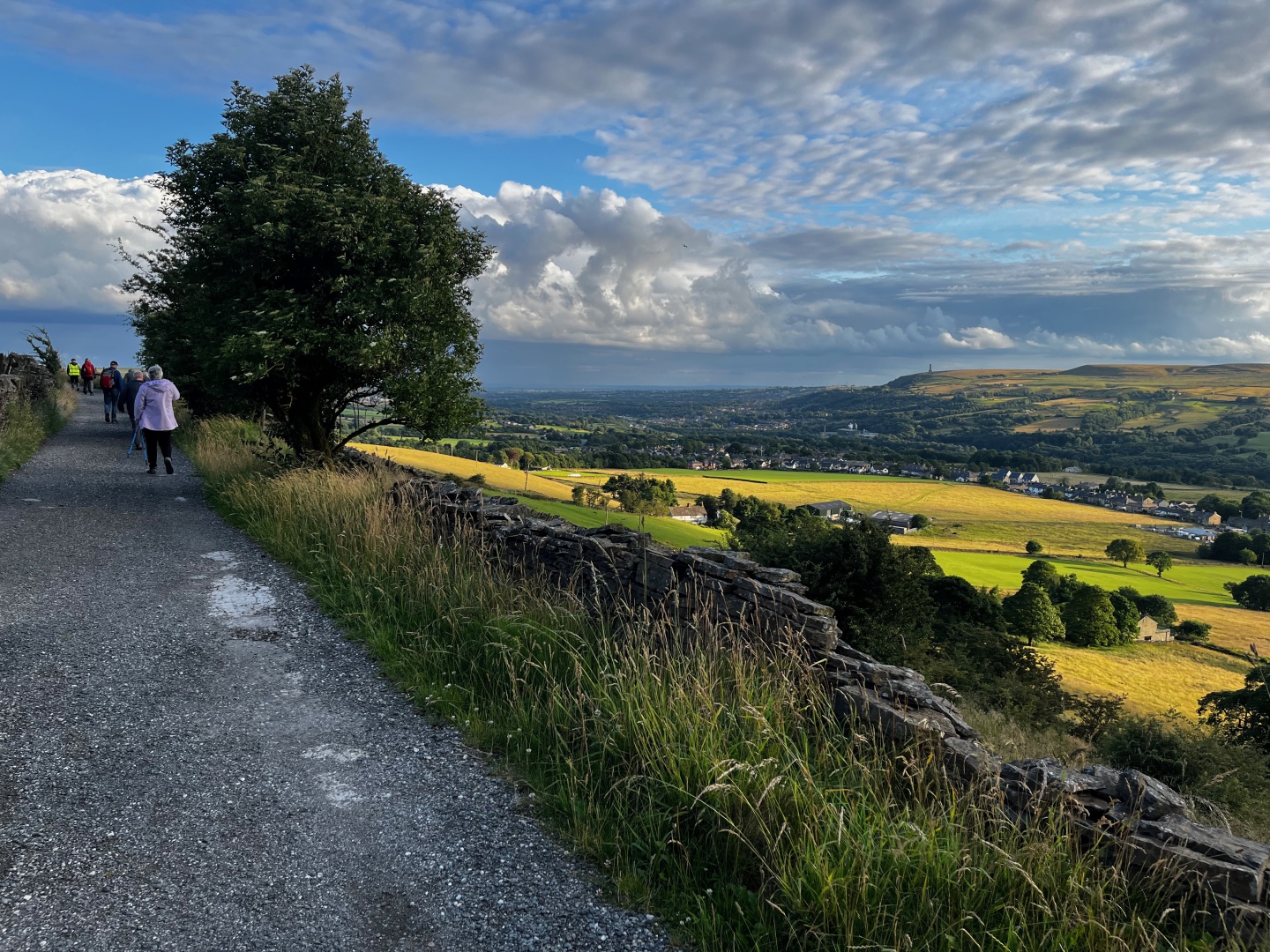 Evening walk with BMFWC from the Shooters Arms, out through Marsden Park Golf Course, and back through the fields taking in the views to Colne and Trawden.